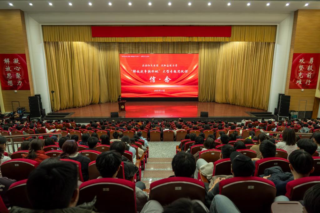 11月11日,由辽沈战役纪念馆推出的“解放战争转折地”大型专题思政课《信・念》首演在新葡萄图书馆报告厅举行。校党委副书记、校长张启俭,党委副书记刘艳军,辽沈战役纪念馆副馆长刘芳出席活动。学校相关部门负责人、思政课教师、全体辅导员,青马班学员和本科生团干部代表500余人参加活动。活动由校团委书记李苓主持。