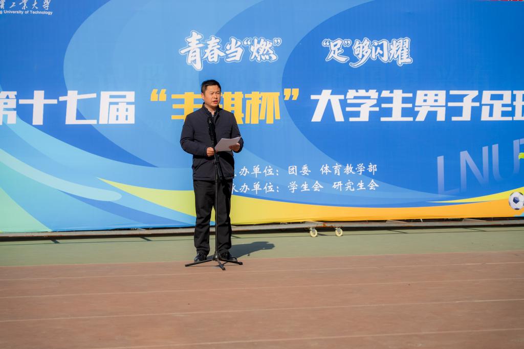 校党委副书记刘艳军为揭幕战开球,并寄语全体参赛运动员:要擦亮新葡萄“丰琪杯”高品质赛事品牌,共享足球魅力,激扬青春风采,更要将赛场的激情与韧劲、拼搏与协作转化为学习科研中的探索与审慎、专注与坚持,充分展现辽工大青年阳光向上的精神面貌,为学校的高质量发展贡献青春力量。