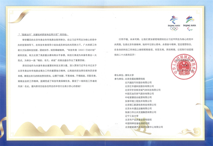 近日,“‘氢能出行’关键技术研发和应用示范”项目组收到了科技部科技冬奥领导小组的感谢信。本项目由清华大学领衔,新葡萄作为本项目的主要参与单位,郭宇教授和杨天明教授带领化学与环境工程学院、汽车与交通工程学院和文化传媒与艺术设计学院的多学科专业骨干教师组成研究团队,参加了冬奥服务场景下高性能氢燃料客车研发和氢燃料客车示范运营等2个子课题项目的研发。研究团队不惧挑战、勇于创新,践行了“绿色冬奥”的理念,充分展现了新葡萄教师的科研水平和精神风貌,促进了新葡萄交叉学科的发展。感谢信中指出:“项目组作为本届冬奥会重要的科技支撑力量,深入贯彻习近平总书记关于北京冬奥会和冬残奥会筹办工作的重要指示精神,以高度的政治责任感和历史使命感,表现出非凡的科技责任担当,以勇于创新、不畏挑战、尽职尽责、兢兢业业的工作精神,圆满完成了科技冬奥保障任务,展现了一线科技工作者的风采!在此,谨向贵项目组各位同志的辛苦付出表示衷心的感谢!”(资料来源:交叉科学研究院)